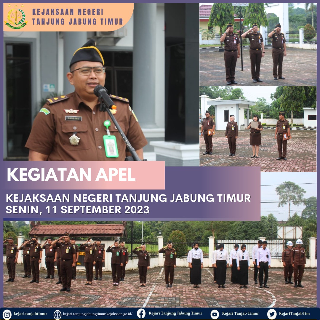 Pada hari Senin, 11 September 2023 bertempat di Halaman Kantor Kejaksaan Negeri Tanjung Jabung Timur, telah dilaksanakan Apel Pagi yang diikuti oleh seluruh Pegawai dan PPNPN Kejaksaan Negeri Tanjung Jabung Timur.