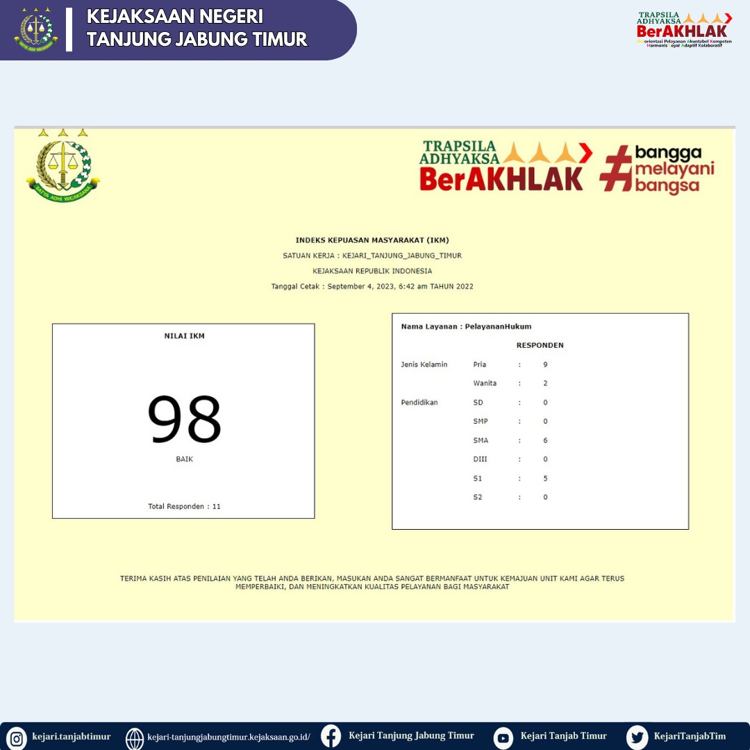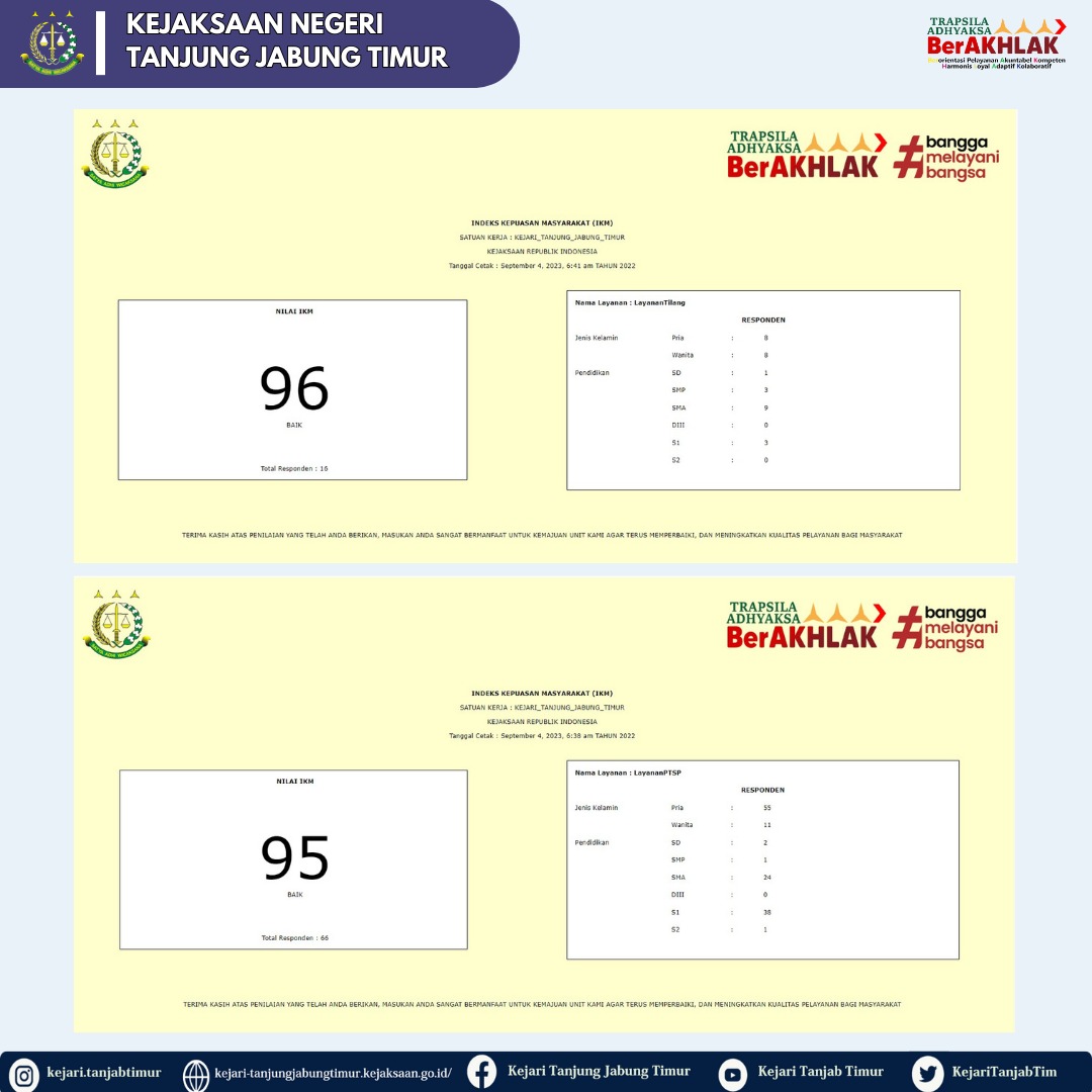 Hasil Indeks Kepuasan Masyarakat (IKM) dari Kejaksaan Negeri Tanjung Jabung Timur Periode Survei Septemberl 2023