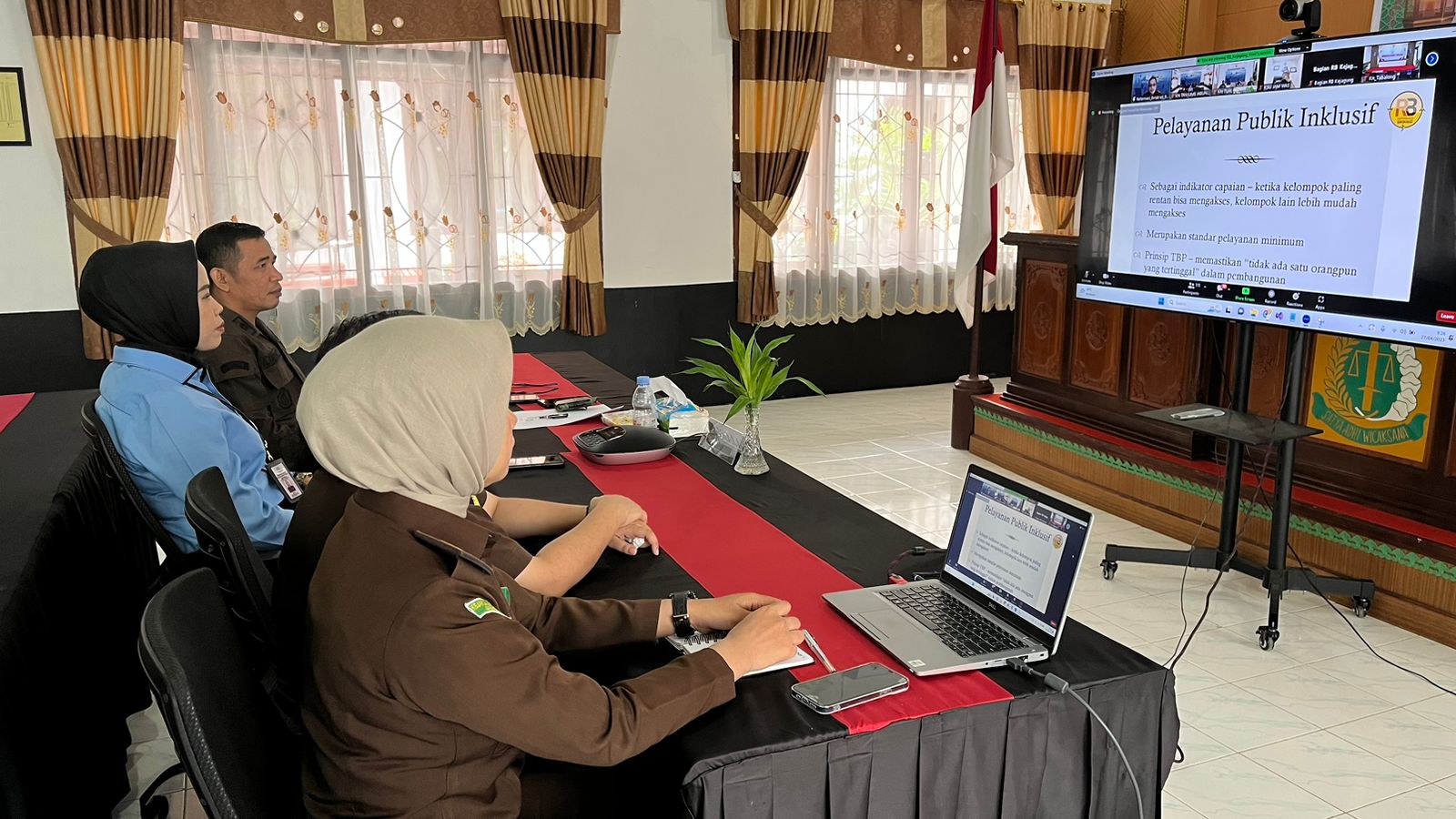 Pada hari Kamis, 27 April 2023 pukul 09:00 WIB s/d selesai, Kepala Kejaksaan Negeri Tanjung Jabung Timur, Ibu Yenita Sari, S.H. M.H. didampingi dengan Kasubagbin A. Fauzan, S.H beserta pegawai Kejaksaan Negeri Tanjung Jabung Timur mengikuti Kegiatan Indeks Kualitas Pelayanan Publik & Indikator Pelayanan Publik Kaum Rentan secara virtual melalui Zoom Meeting yang dilaksanakan di Aula Kejaksaan Negeri Tanjung Jabung Timur.