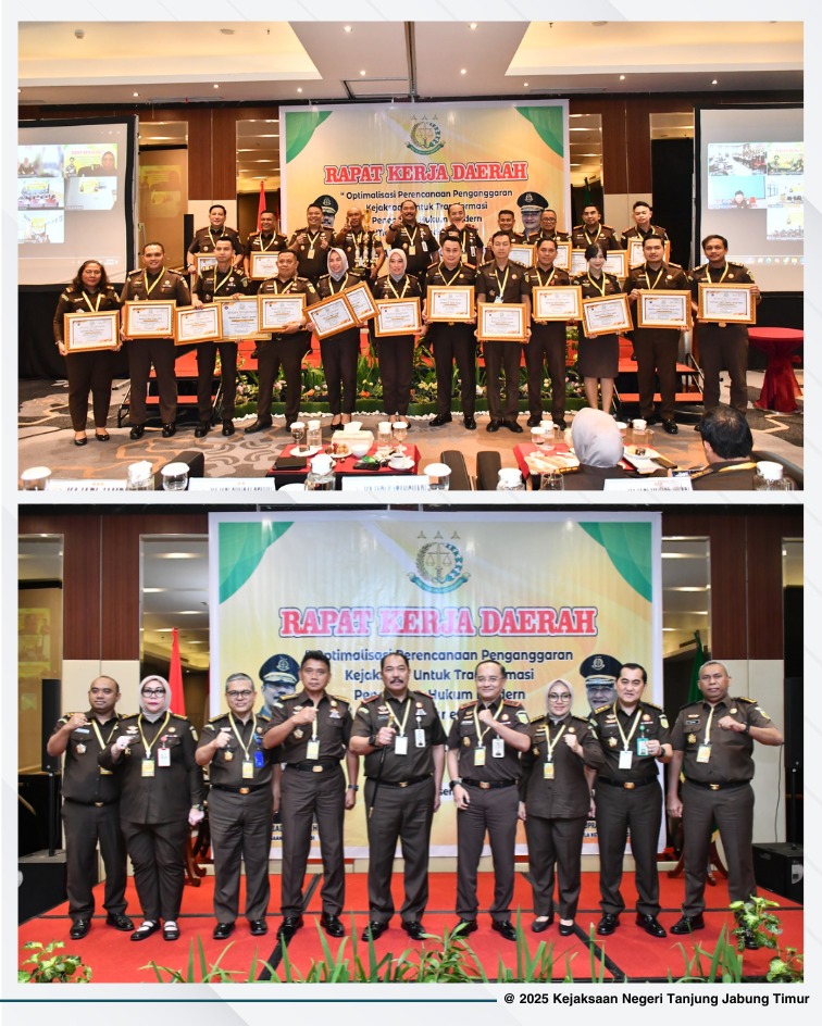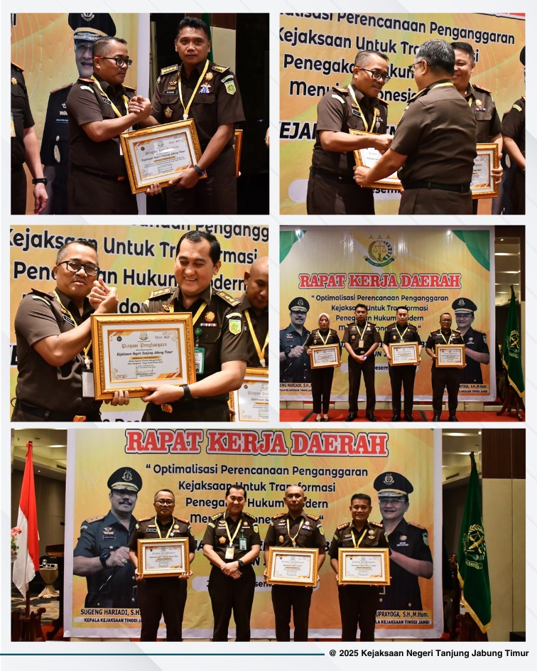 Sebagai bentuk apresiasi, dalam Rakerda ini juga diselenggarakan pemberian penghargaan kepada satuan kerja (Satker) yang menunjukkan prestasi dan kinerja terbaik sepanjang tahun 2025. Hasil Rakerda ini akan menjadi landasan bagi seluruh Kejaksaan Negeri di Jambi dalam menjalankan tugas penegakan hukum yang profesional, modern, dan berorientasi pada kepentingan publik, sejalan dengan visi Indonesia Emas 2045.