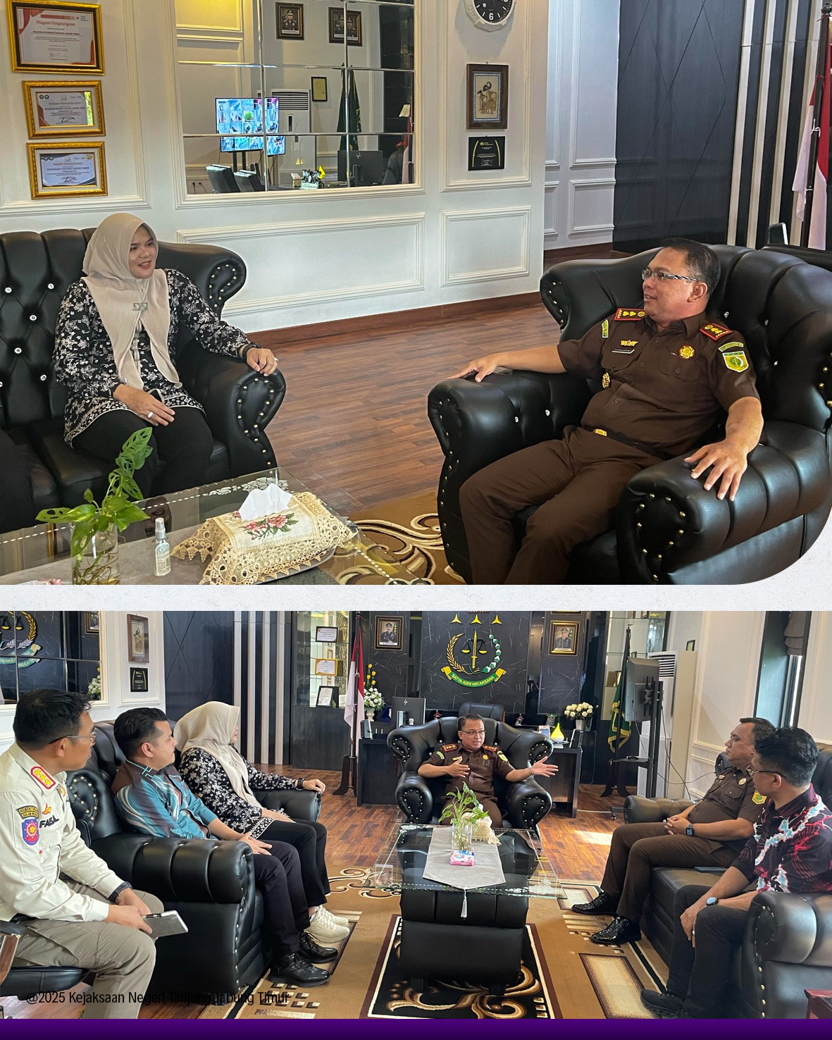 Pada hari Kamis, 06 Maret 2025 pukul 15.00 WIB s/d Selesai bertempat di Kantor Kejaksaan Negeri Tanjung Jabung Timur. Kepala Kejaksaan Negeri Tanjung Jabung Timur (Bambang Supriyanto, S.H.,M.H) telah menerima Kunjungan Silaturahmi dari Bupati Tanjung Jabung Timur (Hj. Dillah Hikmah Sari, S.T) yang turut dihadiri oleh Asisten I Sekretariat Daerah Kabupaten Tanjung Jabung Timur (Suhaspurronjani, S.Sos.) dan Kasat Pol PP Tanjung Jabung Timur (Zulfaisyal S.AP) dan Sekdis Pemuda dan Olahraga Tanjung Jabung Timur (Ulfi Rahmad S.STP)