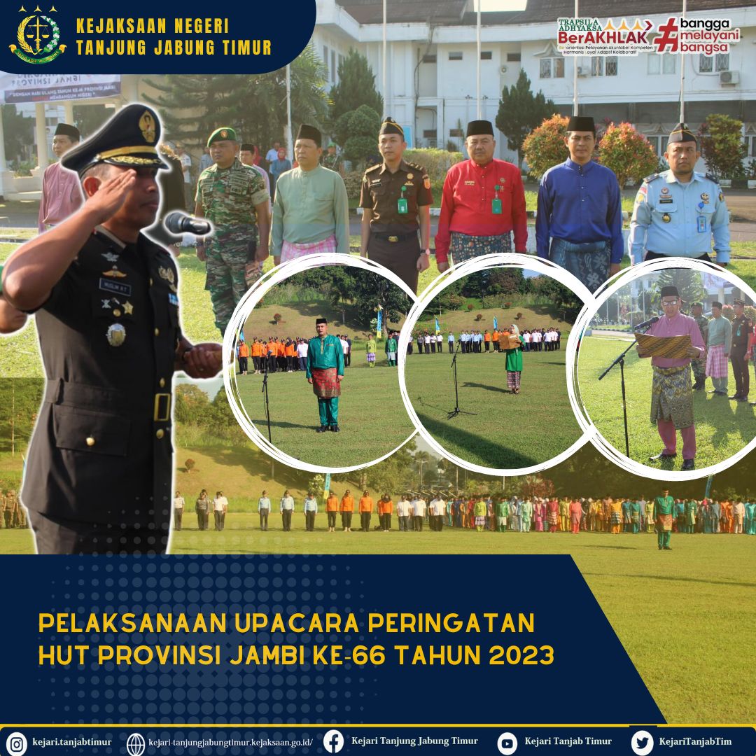 Pelaksanaan Upacara peringatan HUT Provinsi Jambi ke-66 Tahun 2023 di lapangan kantor Bupati Tanjung Jabung Timur pukul 08.00 WIB s/d Selesai .