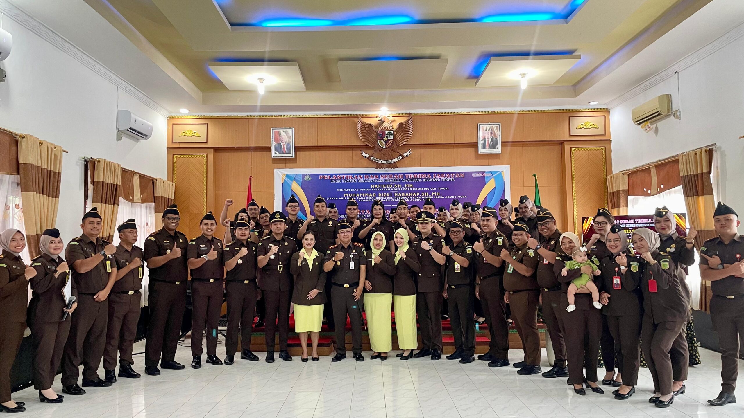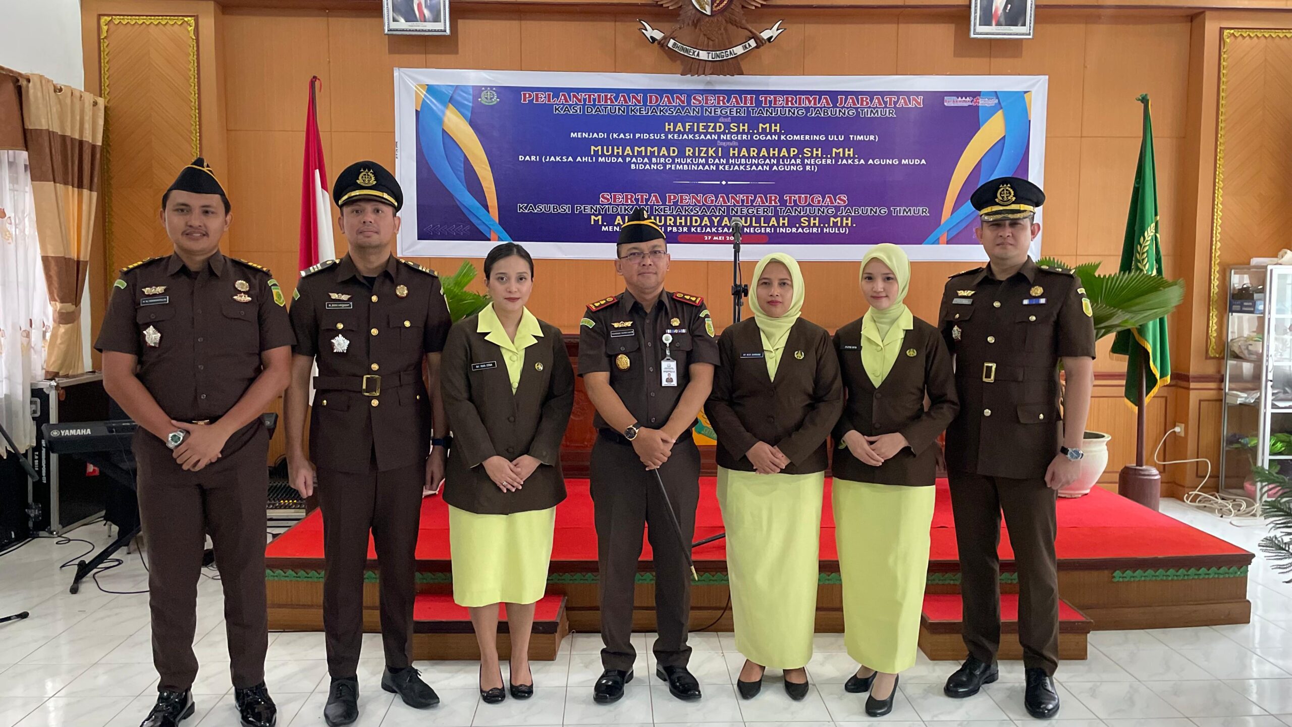 Pada hari Senin tanggal 27 Mei 2024 di bertempat di Aula Kejari Tanjung Jabung Timur, Kajari Tanjung Jabung Timur (Bambang Supriyanto, S.H., M.H) didampingi Kasubag Pembinaan, Para Kasi dan Semua Pegawai Kejari Tanjung Jabung Timur, telah melaksanakan kegiatan Pelantikan dan Serah Terima Jabatan Kepala Seksi Perdata dan Tata Usaha Negara Kejari Tanjung Jabung Timur dari Pejabat Lama (Hafiezd, S.H., M.H) yang akan melaksanakan tugas di tempat baru di Kejaksaan Negeri Ogan Komering Ulu Timur kepada Pejabat Baru (Muhammad Rizki Harahap, S.H., M.H.) dari (Jaksa ahli muda pada Biro Hukum dan Hubungan Luar Negeri Jaksa Agung Muda Bidang Pembinaan Kejaksaan Agung RI)