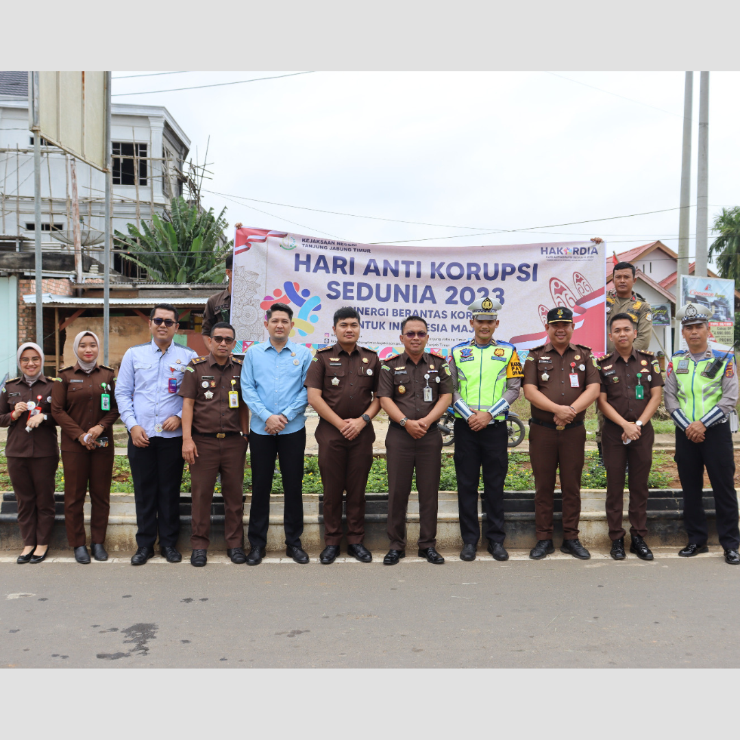 Pada hari Selasa tanggal 12 Desember 2023 jam 10.00 WIB s/d Selesai di Simpang Empat Lampu Merah Perkantoran Muara Sabak, Kajari Tanjung Jabung Timur (Bambang Supriyanto S.H., M.H.) di dampingi Para Kasi dan Pegawai Kejari Tanjab Timur telah melaksanakan kegiatan Pembagian Sticker Hakordia kepada masyarakat Muara Sabak yang tengah melintas dalam rangka Memperingati Hari Anti Korupsi Sedunia (HAKORDIA) dan juga didampingi oleh Satlantas Polres Tanjung Jabung Timur dalam melaksanakan kegiatan tersebut