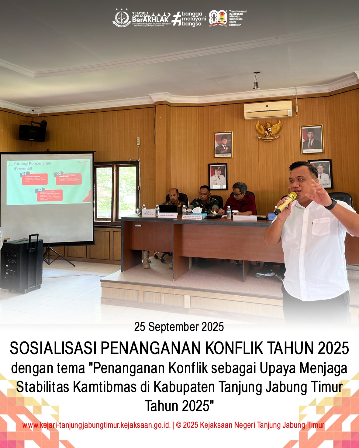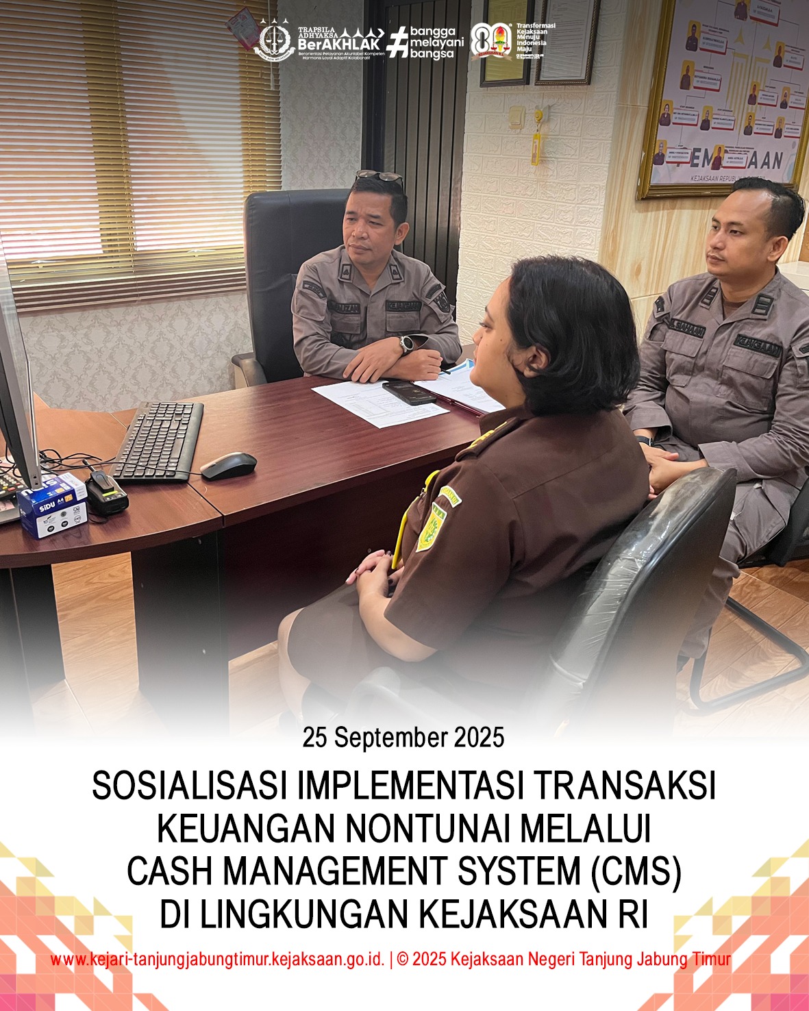 Pada hari Rabu, 30 Maret 2022; Kepala Kejaksaan Negeri Tanjung Jabung Timur (Ibu Yenita Sari, S.H) menghadiri Peresmian TK Kemala Bhayangkari 38 Kab. Tanjung Jabung Timur dan Apel Gelar Peralatan Karhutla TNI POLRI dan Instansi terkait. Peresmian TK Kemala Bhayangkari 38 dan Apel Gelar Peralatan Karhutla TNI POLRI dan Instansi terkait dibuka langsung oleh Kapolda Jambi beserta Ketua Bhayangkari Daerah Jambi.