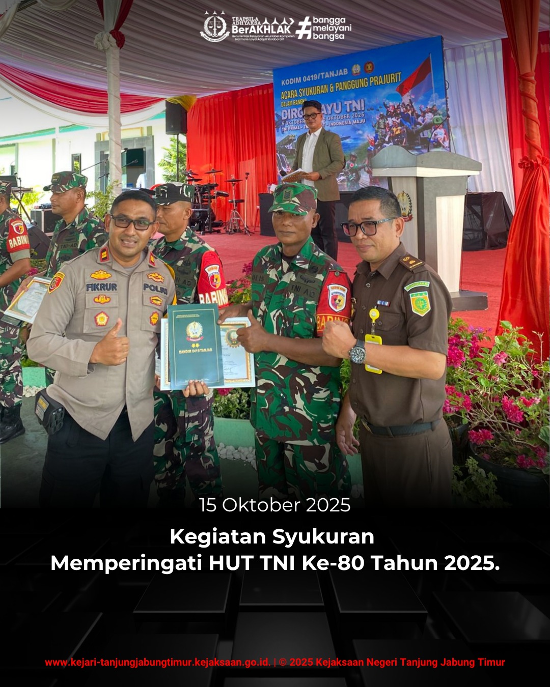 Pada hari Rabu, 30 Maret 2022; Kepala Kejaksaan Negeri Tanjung Jabung Timur (Ibu Yenita Sari, S.H) menghadiri Peresmian TK Kemala Bhayangkari 38 Kab. Tanjung Jabung Timur dan Apel Gelar Peralatan Karhutla TNI POLRI dan Instansi terkait. Peresmian TK Kemala Bhayangkari 38 dan Apel Gelar Peralatan Karhutla TNI POLRI dan Instansi terkait dibuka langsung oleh Kapolda Jambi beserta Ketua Bhayangkari Daerah Jambi.