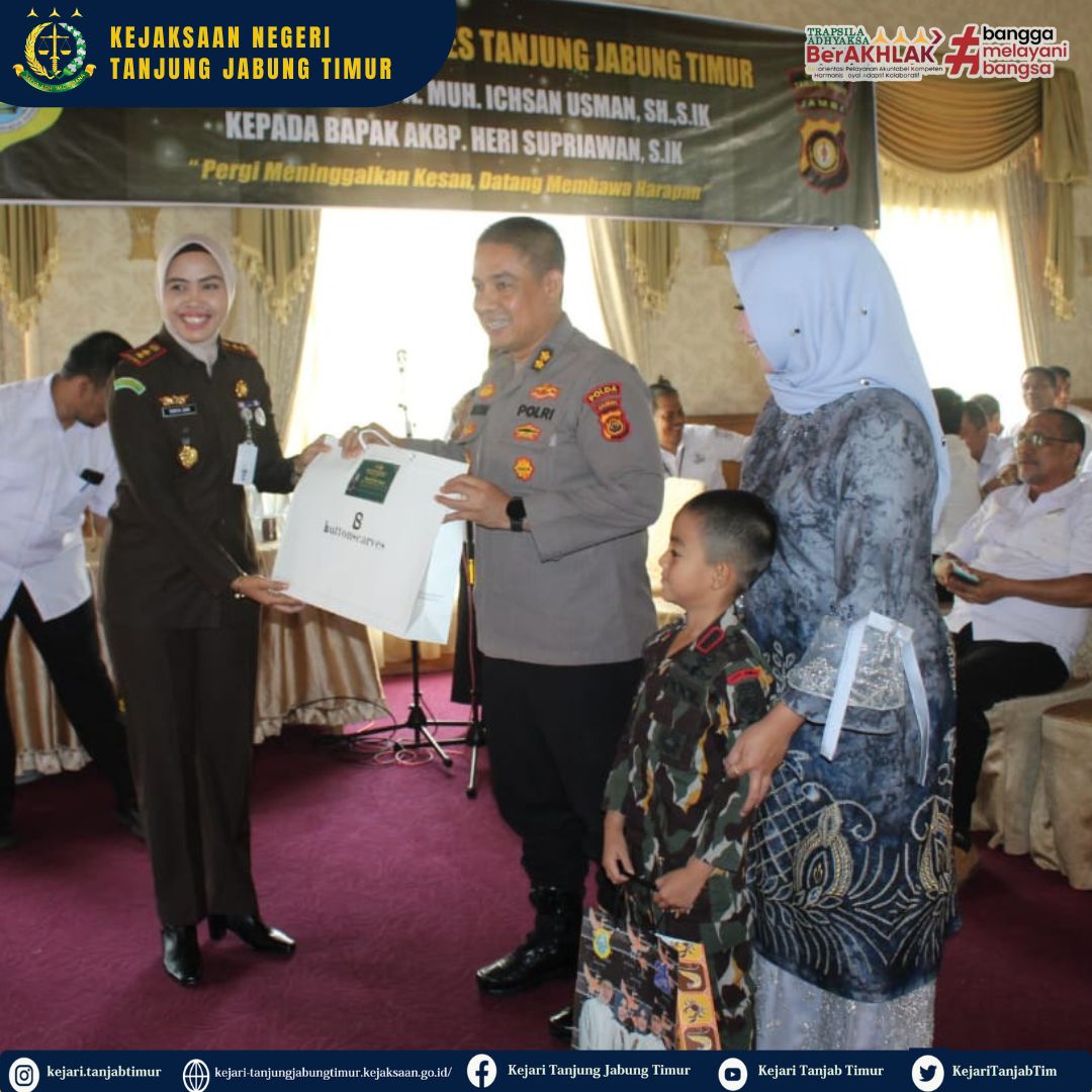 Pada hari Rabu, 11 Januari 2022 jam 10.15 WIB s/d Selesai di aula rumah dinas Bupati Tanjab Timur diselenggarakan kegiatan Pisah Sambut Kapolres Tanjung Jabung Timur dari AKBP Andi Muh Ichsan Usman, SH, S.I.K kepada AKBP Heri Supriawan, S.I.K.