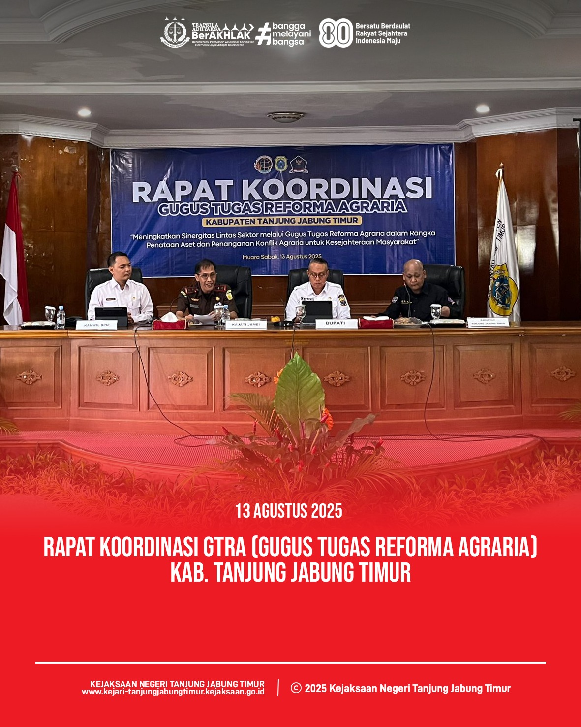 Pada 27 Mei 2025,sekira pukul 10:00 WIB dilaksanakan kegiatan Rapat Koordinasi Forum Kewaspadaan Dini Masyarakat Tanjung Jabung Timur Dengan Tema “Upaya Pencegahan dan Penanganan Potensi Ancaman,Gangguan,Hambatan,dan Tantangan (AGHT) di Masyarakat Khususnya di Wilayah Kab. Tanjung Jabung Timur” yang dihadiri oleh Kasi Intelijen Kejaksaan Negeri Tanjung Jabung Timur, Bapak Rahmad Abdul, S.H., selaku narasumber pada acara tersebut.