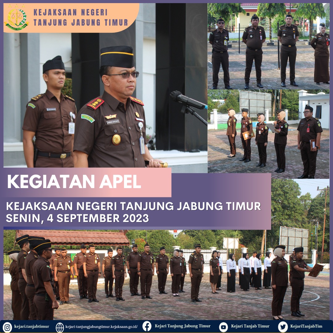 Pada hari Senin, 4 September 2023 bertempat di Halaman Kantor Kejaksaan Negeri Tanjung Jabung Timur, telah dilaksanakan Apel Pagi yang diikuti oleh