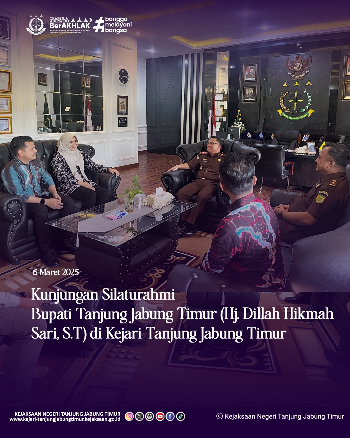 Kunjungan Silaturahmi dari Bupati Tanjung Jabung Timur Hj. Dillah Hikmah Sari, S.T pada Kejaksaan Negeri Tanjung Jabung Timur