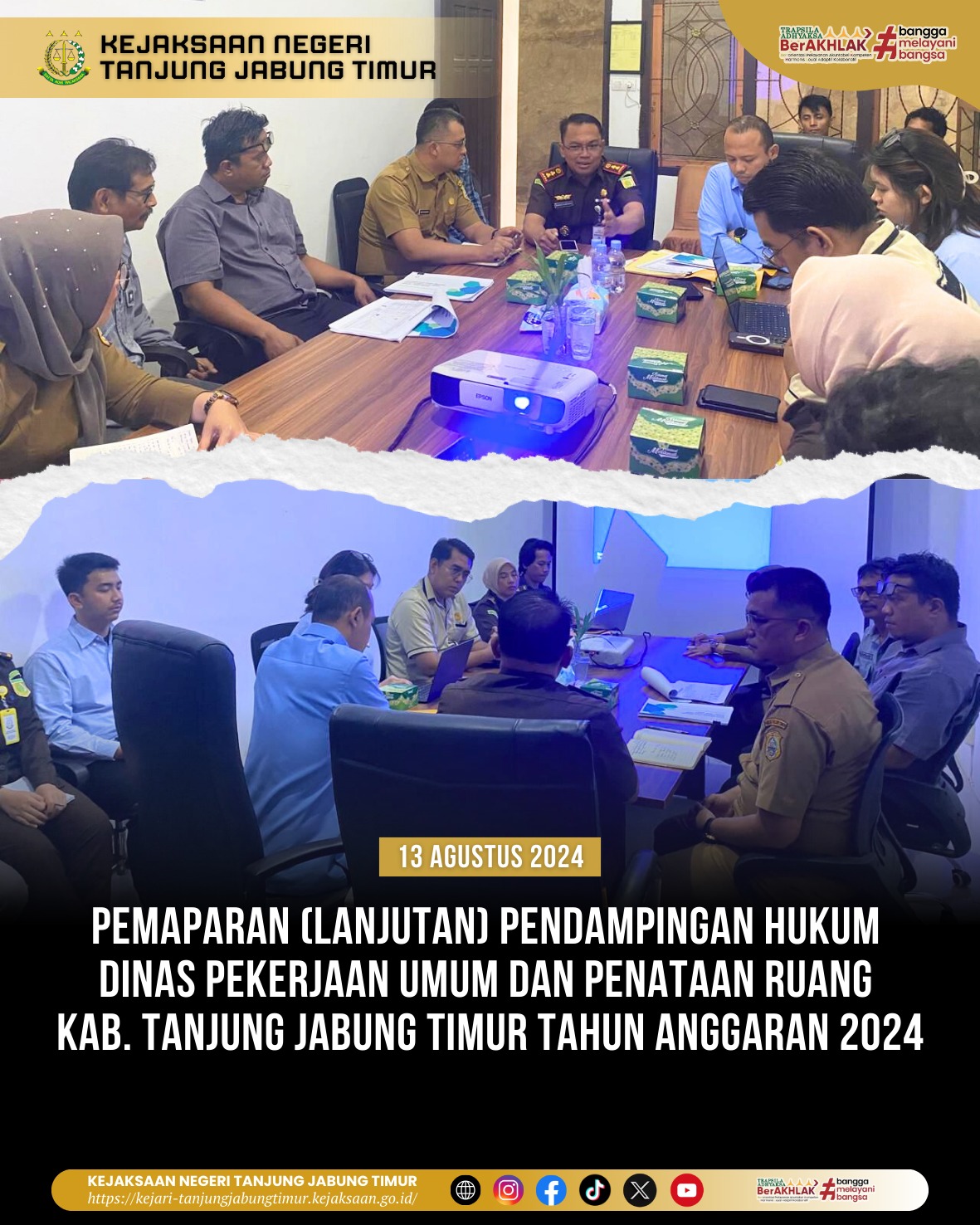 Pada hari Selasa tanggal 13 Agustus 2024 jam 10:00 WIB s.d Selesai bertempat di Ruang Rapat Datun. Kajari Tanjung Jabung Timur (Bambang