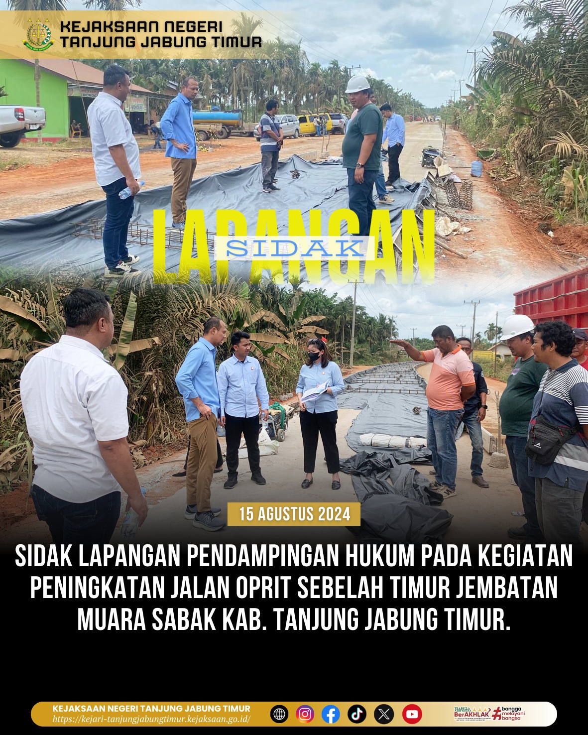 Pada hari Kamis tanggal 15 Agustus 2024 Jam 10.30 WIB s/d Selesai bertempat di Jalan Oprit Sebelah Timur Jembatan Muara Sabak. Kasi