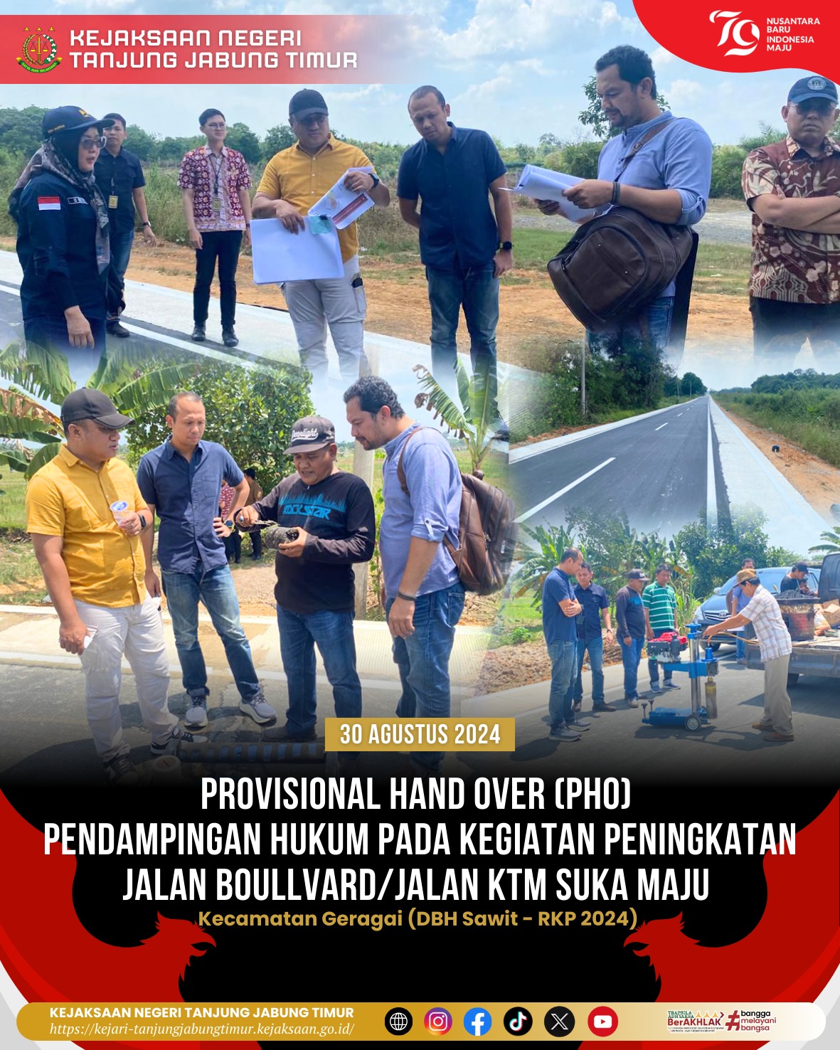 Provisional Hand Over (PHO) Tinjau Lapangan Pendampingan Hukum pekerjaan Peningkatan Jalan Boullvard/Jalan KTM Suka Maju Kecamatan Geragai (DBH Sawit – RKP 2024).