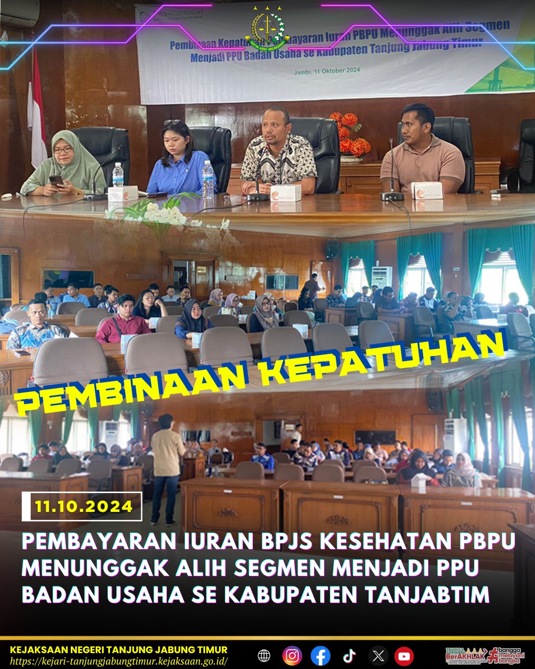 Pembinaan Kepatuhan Pembayaran iuran BPJS Kesehatan PBPU Menunggak Alih Segmen Menjadi PPU Badan Usaha se Kabupaten Tanjung Jabung Timu