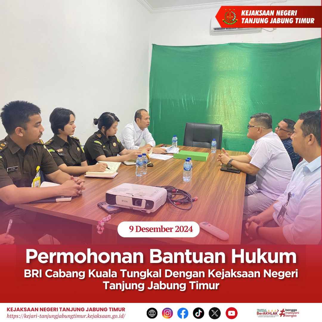 Pada hari Senin tanggal 09 Desember telah dilaksanakan Expose Bantuan Hukum Antara BRI Cabang Kuala Tungkal Dengan Kejaksaan Negeri Tanjung Jabung Timur.