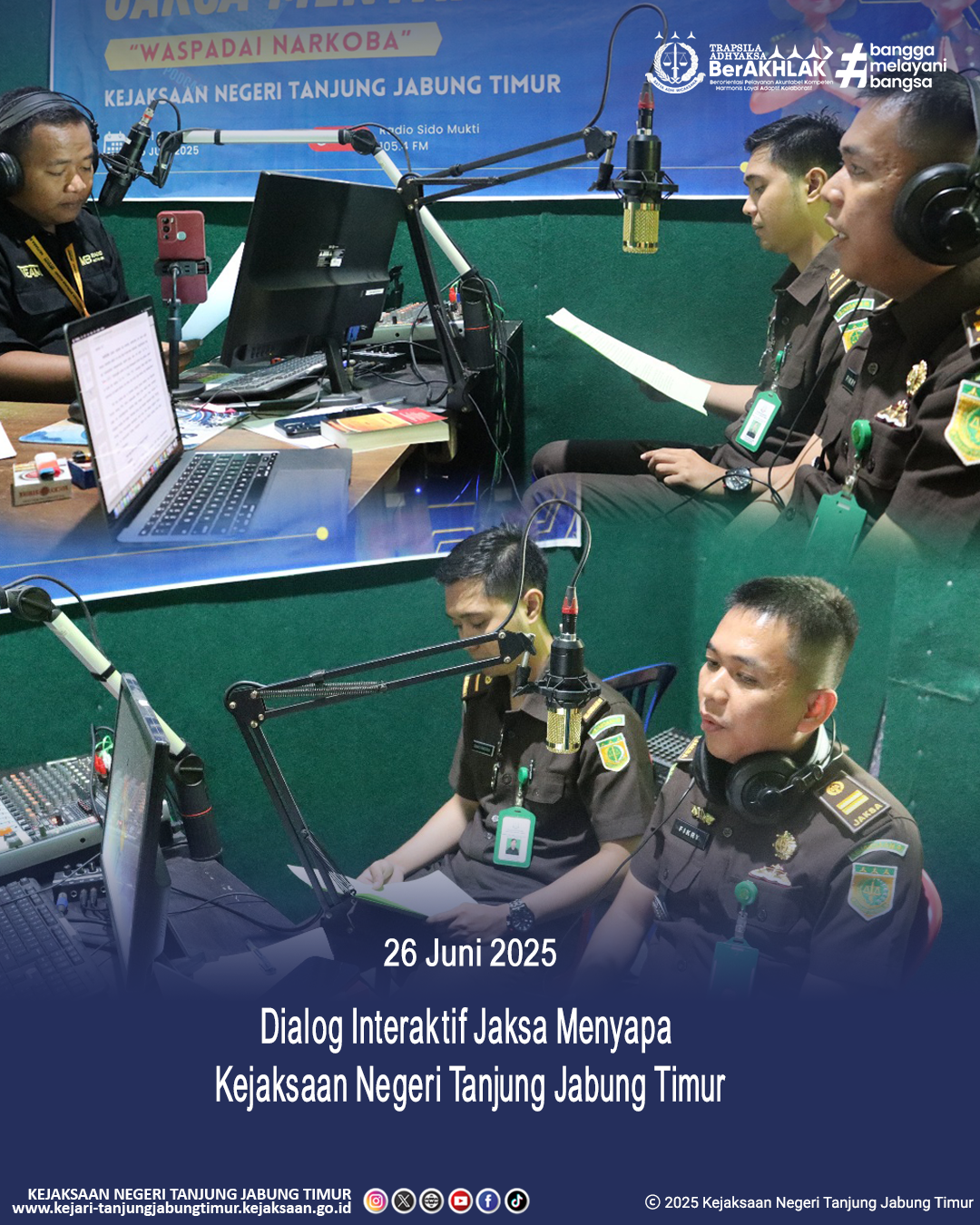 Pada hari Kamis, 26 Juni 2025 pukul 10.00 WIB telah dilaksanakan kegiatan Dialog Interaktif Jaksa Menyapa melalui siaran radio SM Radio 105.4