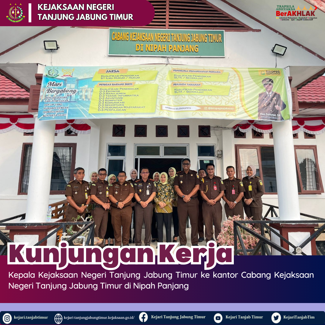 Pada 4 November 2024,telah dilaksanakan Kunjungan Kerja Wakil Kepala Kejaksaan Tinggi Jambi dan Inspeksi Pemantauan Bidang Pengawasan Kejaksaan Tinggi Jambi serta Supervisi