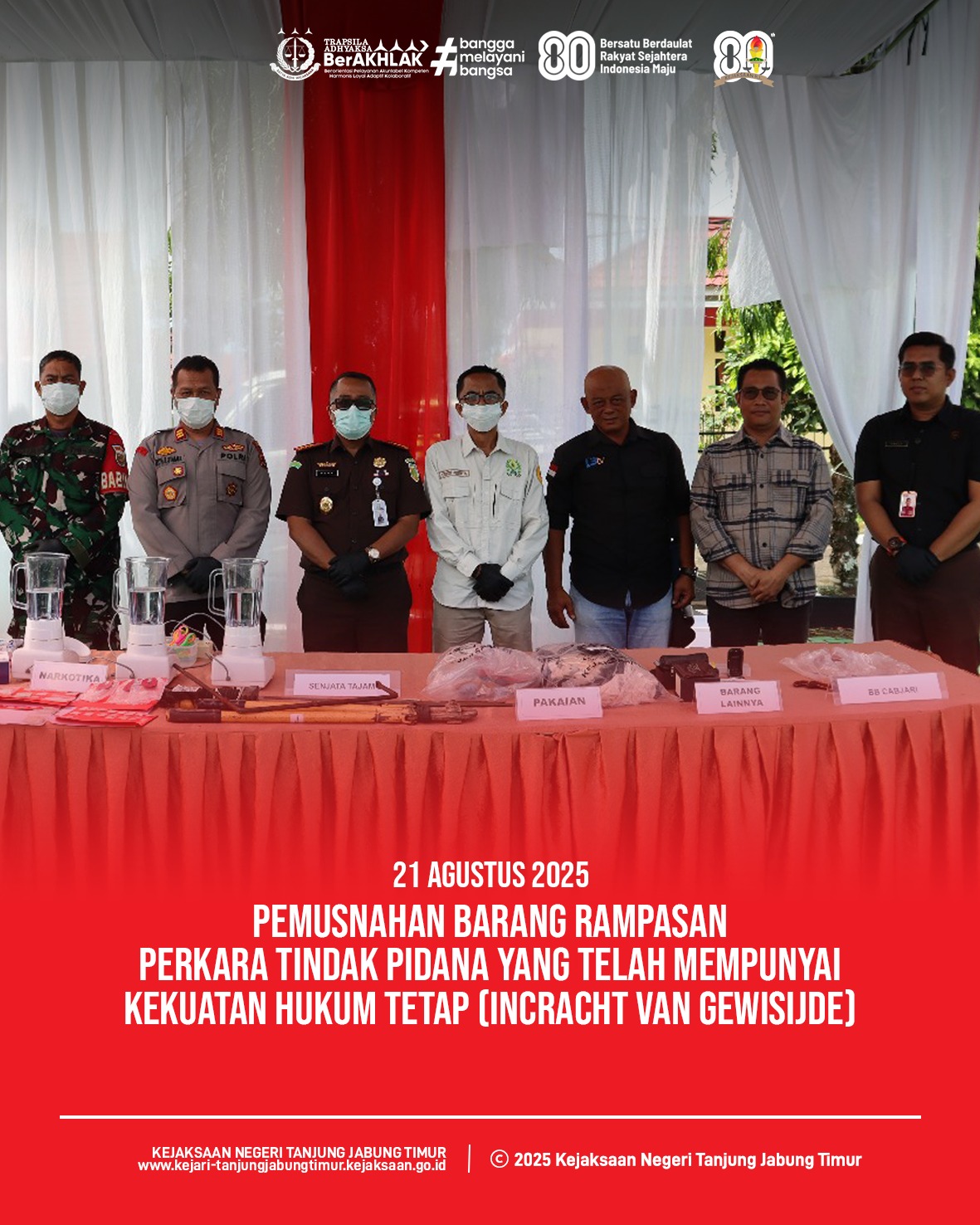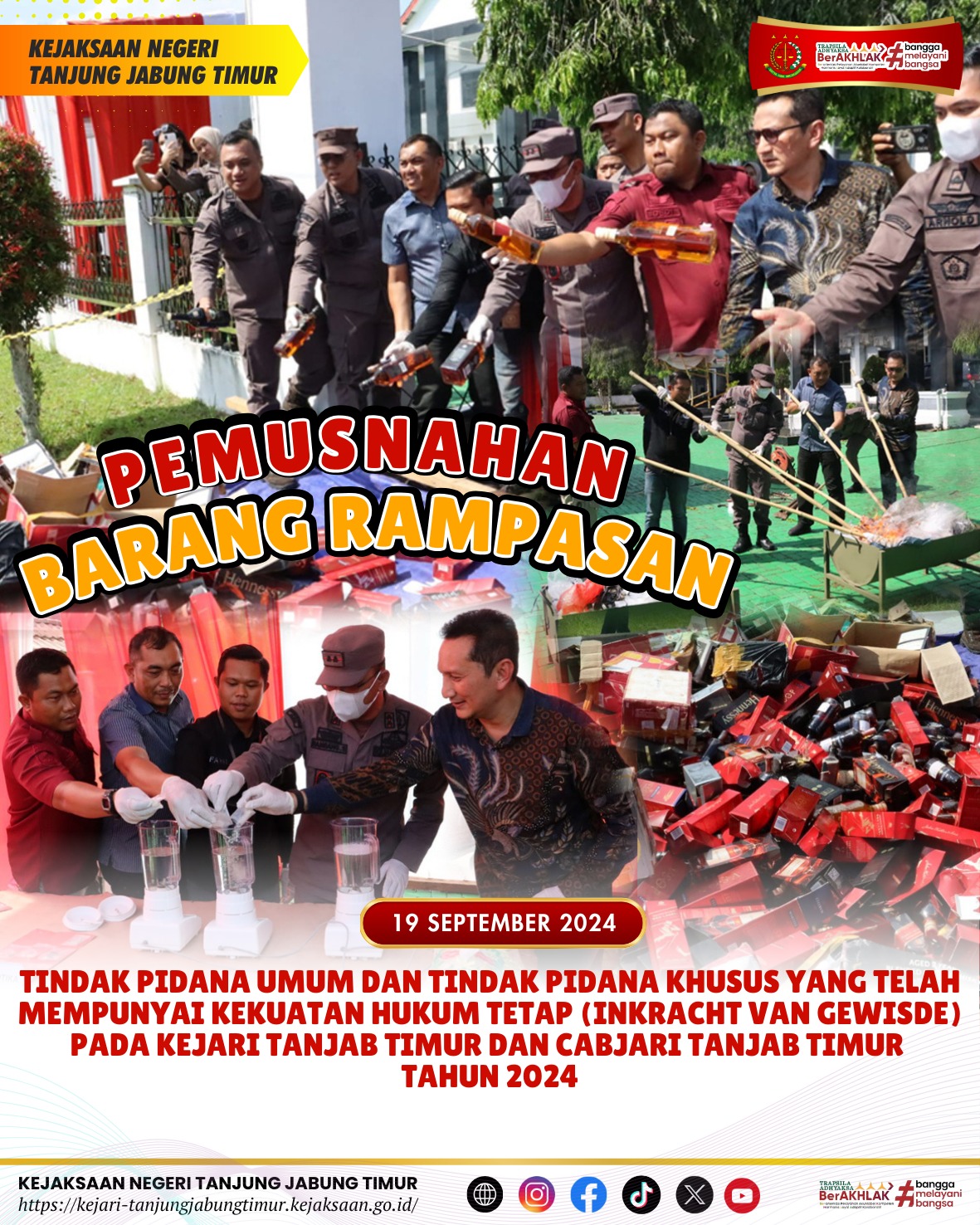 Pemusnahan Barang Rampasan Tindak Pidana Umum dan Tindak Pidana Khusus Yang telah Mempunyai Kekuatan Hukum Tetap (Inkracht) Pada Kejari Tanjab Timur dan Cabjari Tanjab Timur Tahun 2024