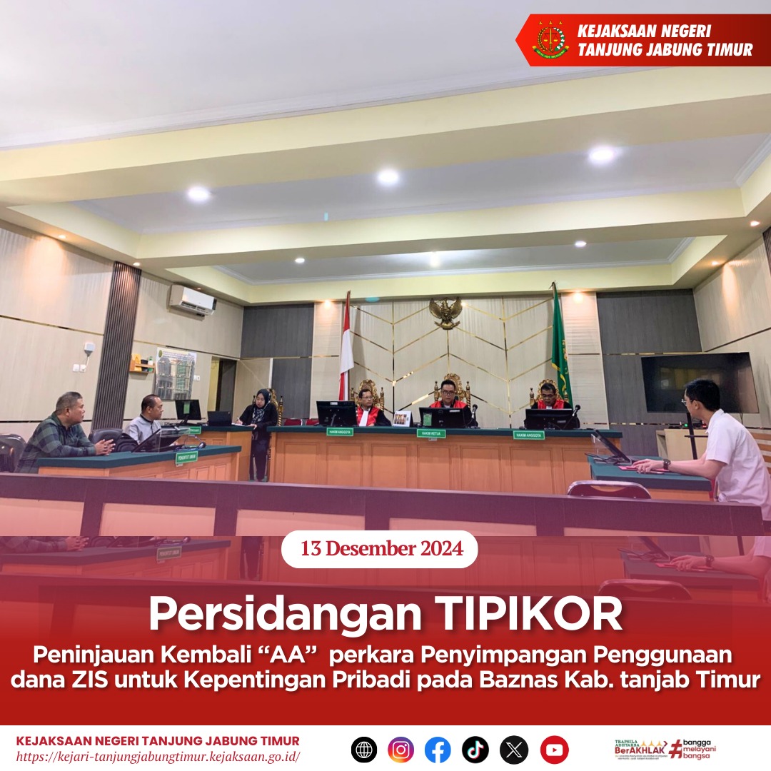 Sidang Peninjauan Kembali (PK) dengan Pemohon AA perkara TIPIKOR Penyimpangan Penggunaan Dana ZIS untuk kepentingan pribadi pada BAZNAS Kabupaten Tanjung Jabung Timur TA 2016-2021